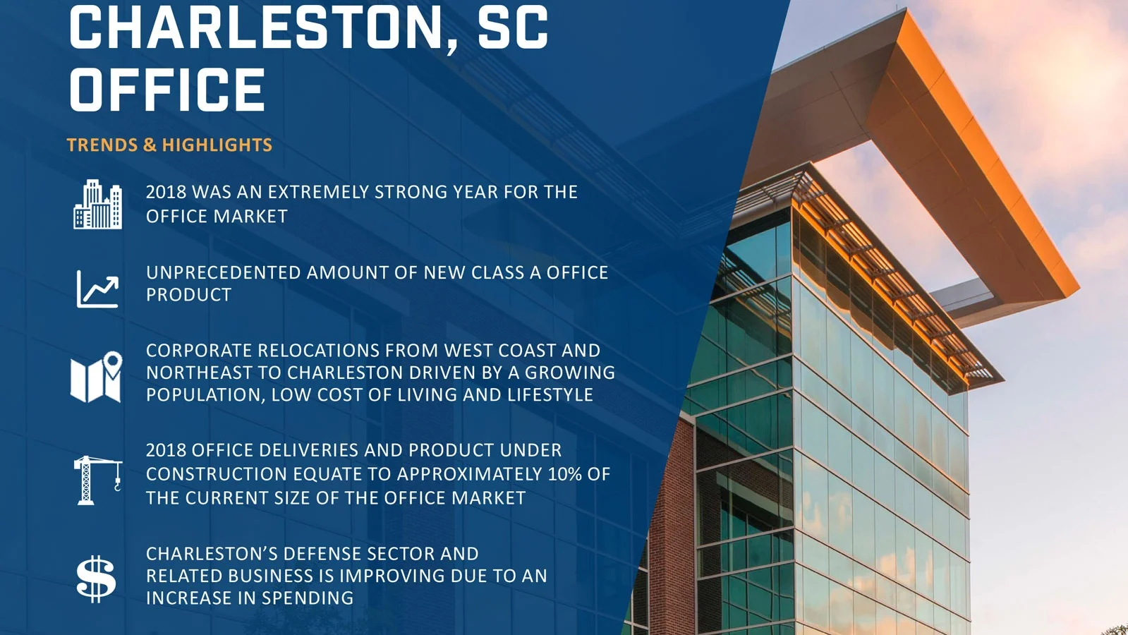 Office Andrew Smock 7/13/19 Office Andrew Smock 7/13/19 Q2 2019 | CHARLESTON OFFICE MARKET REPORT Click to download the full report Read More Office Andrew Smock 4/30/19 Office Andrew Smock 4/30/19 Q1 2019 | CHARLESTON OFFICE MARKET REPORT Click to download the full report Read More Office Andrew Smock 1/21/19 Office Andrew Smock 1/21/19 YEAR END 2018 | OFFICE MARKET REPORT Click to download the full report Read More Newer Posts